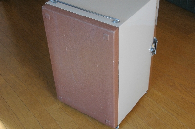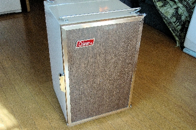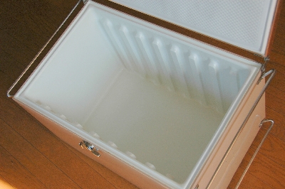 |  基本的には立てて使うクーラーボックスです。 本体はスチール製で結構重さはあります。 上下に足が付いていて逆さまにしても使えます。 また足はタオル掛けなどにもなりそうです。