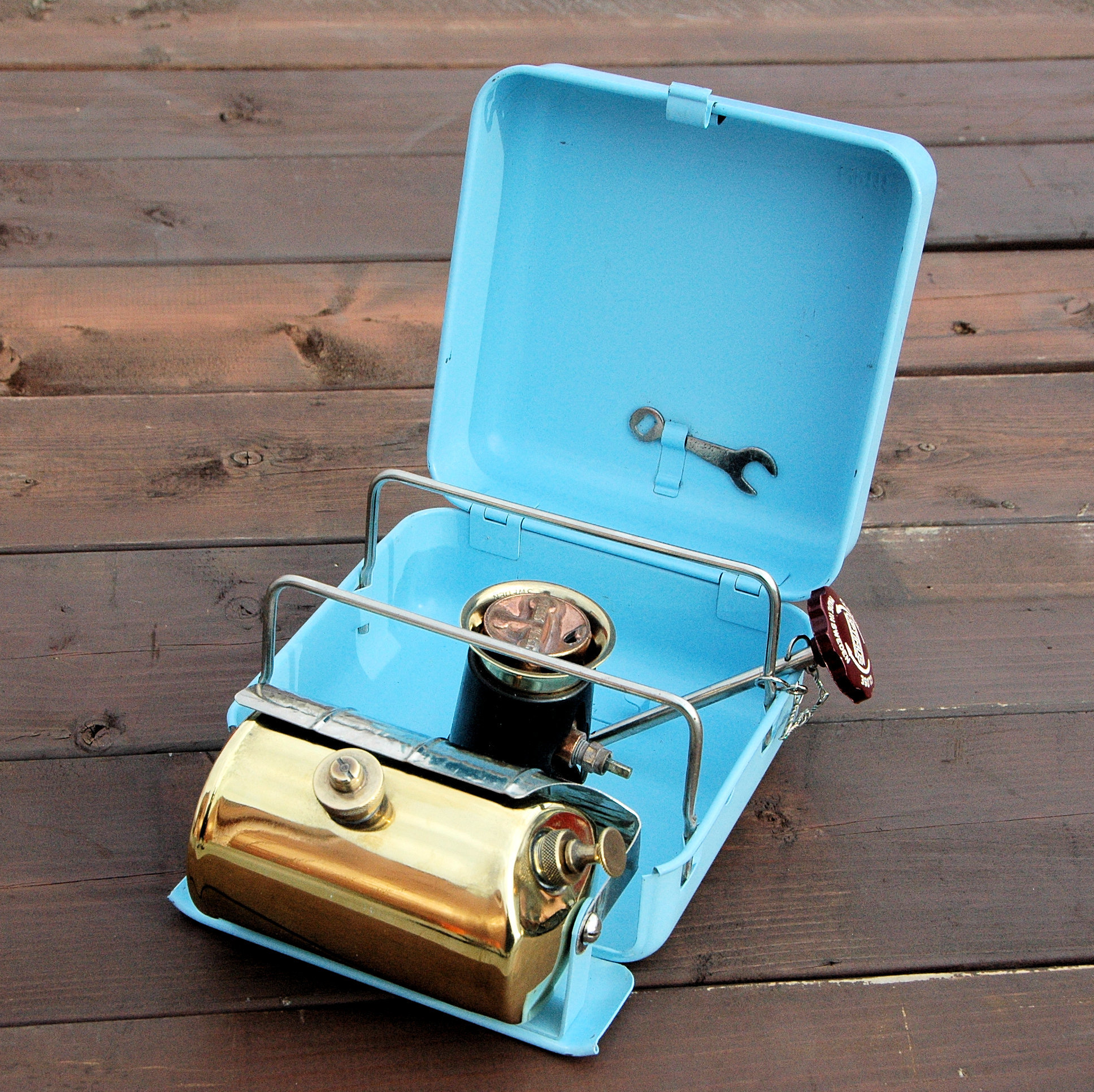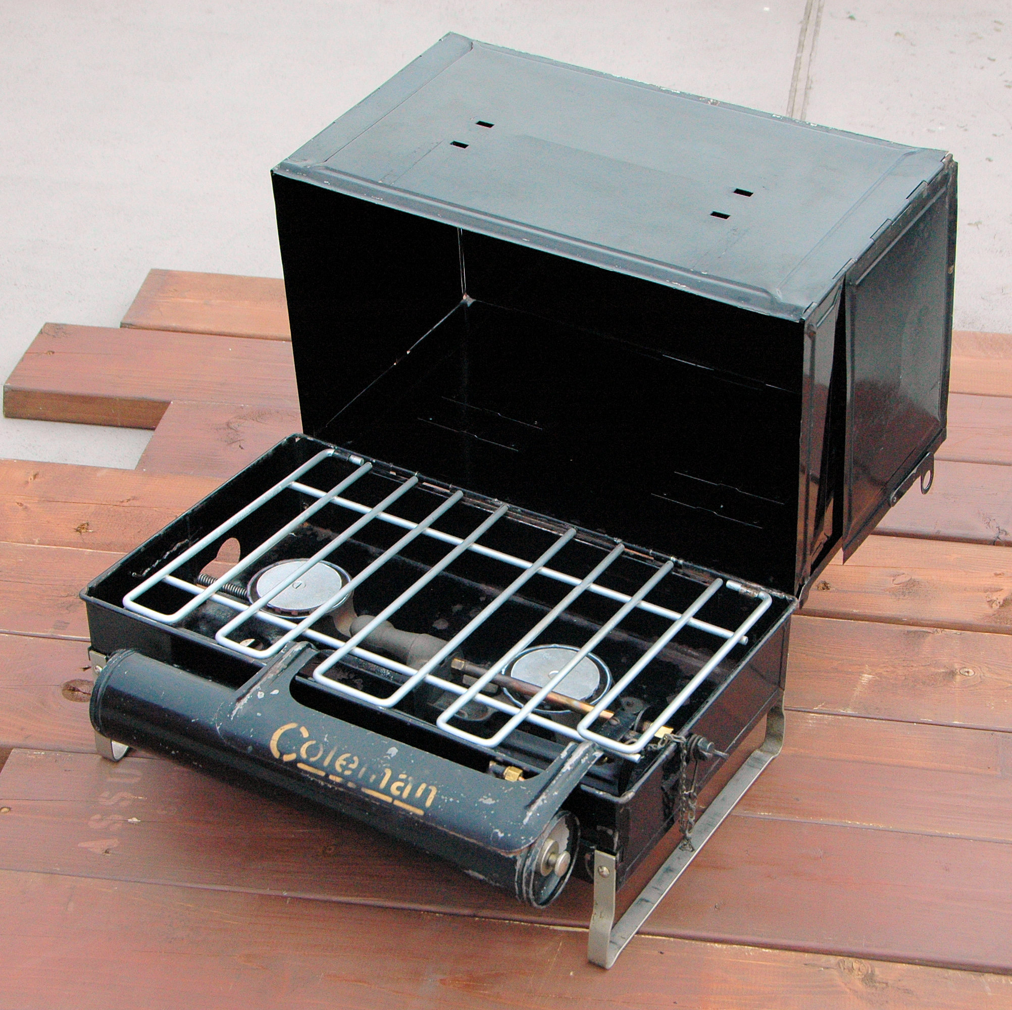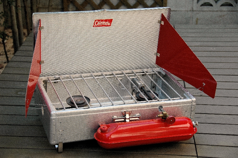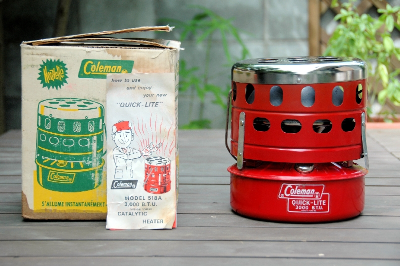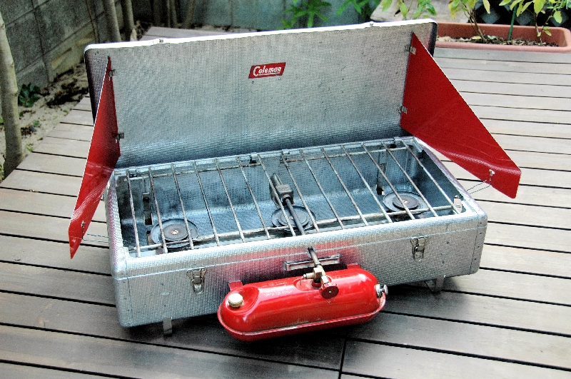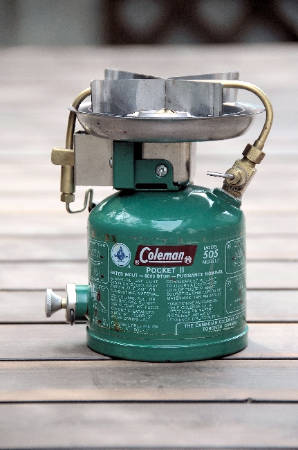 Coleman 505 カナダ製のイージーライトです。通称『ポケットⅡ』で、これは初期のタイプ。ツーレバーでとろ火が出来るので重宝します。アメリカ製の576とほぼ同じですが、カナダ製に良くあるステッカーの貼る位置が逆です。 |