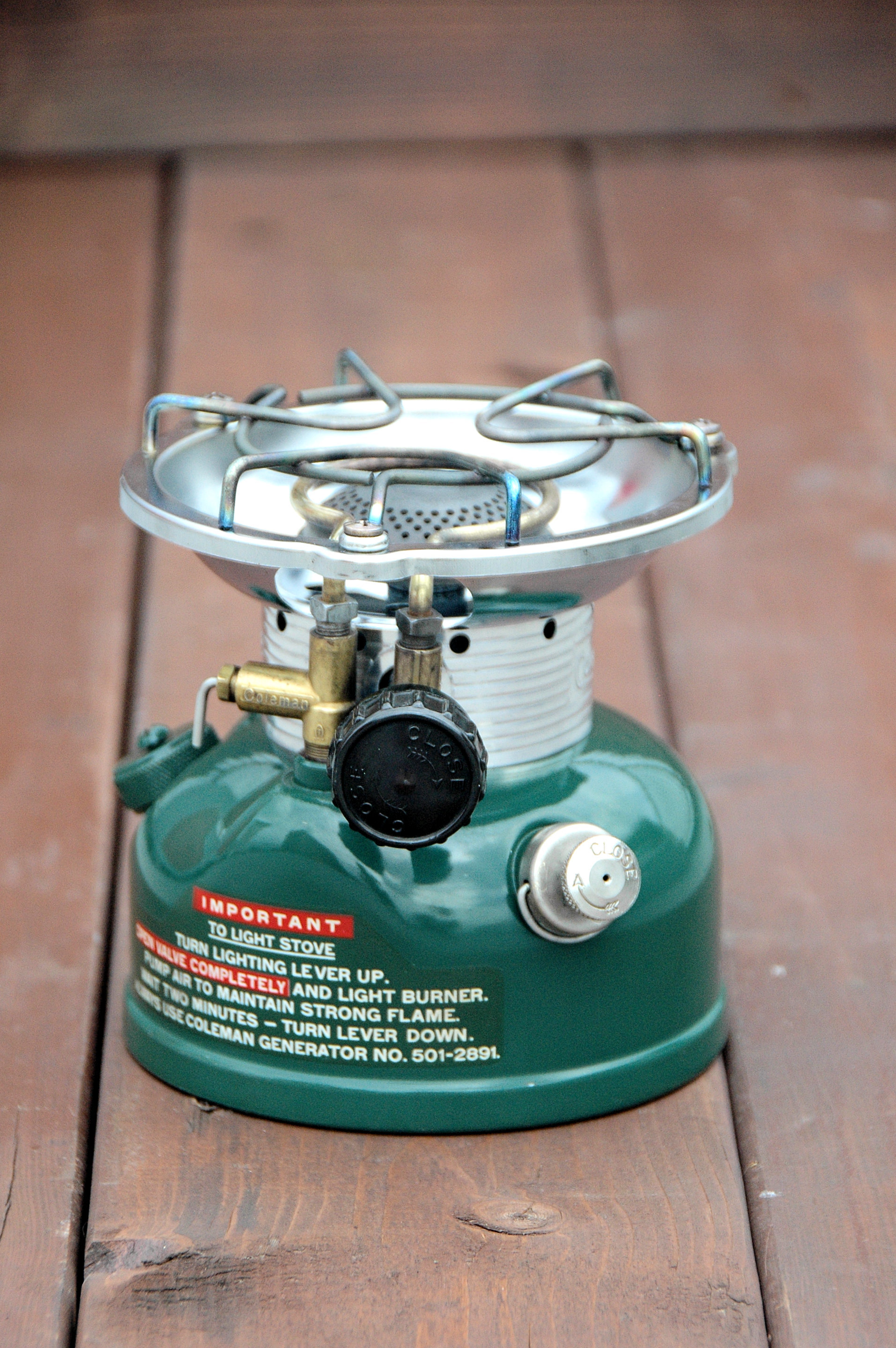 Coleman 502 シングルバルブへと構造変更され、その後ロングセラーとなったストーブです。 |