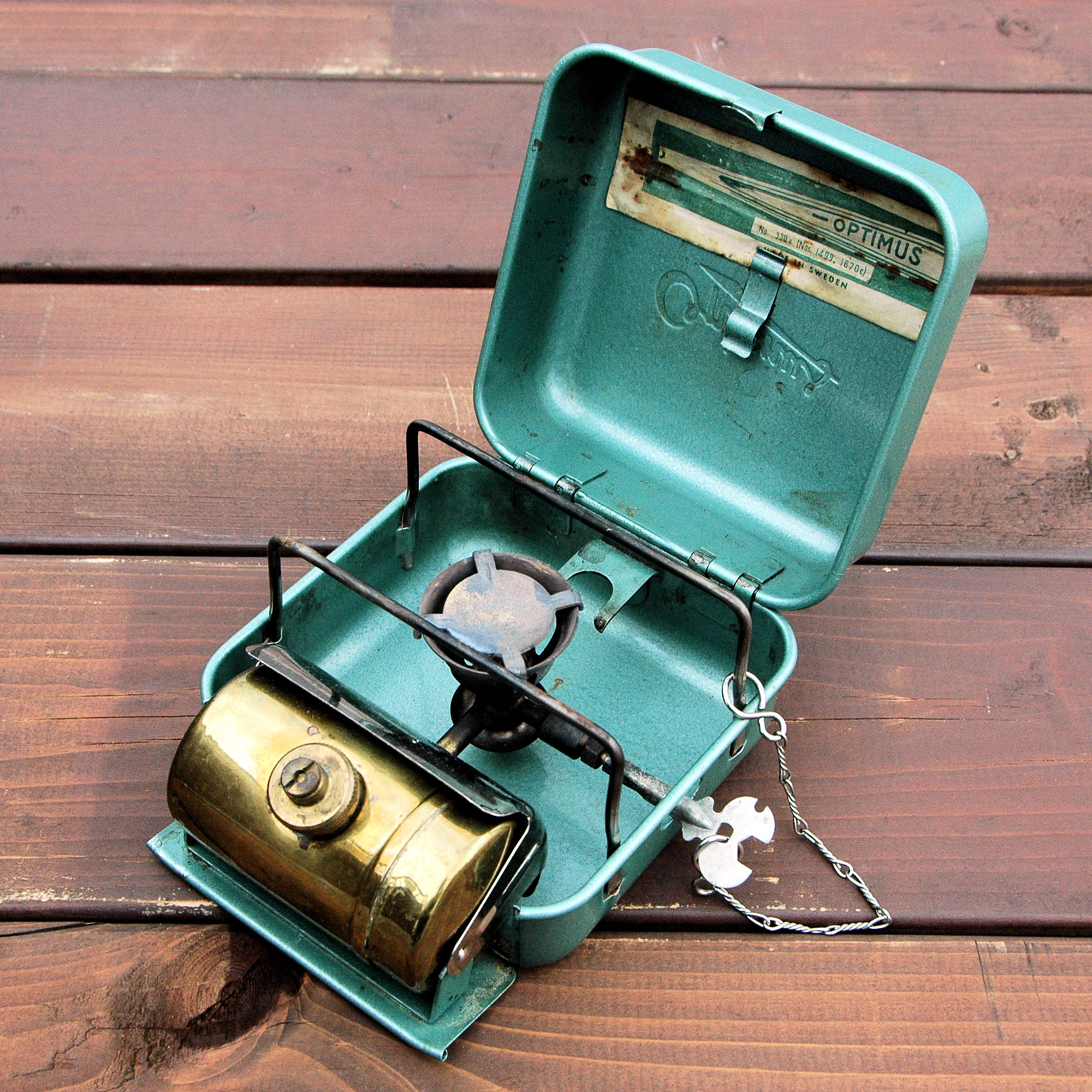 SVEA 123R OPTIMUSがライセンスを引き継ぎ生産を始めます。スピンドルの角度が水平になり、クリーニングニードルが組み込まれて、少し複雑な構造となりました。生産元が変わりましたが、初期のモデルにはタンクにMADE IN SWEDENの刻印がまだ残っています。その後も生産が続いており、現在に至ります。 |