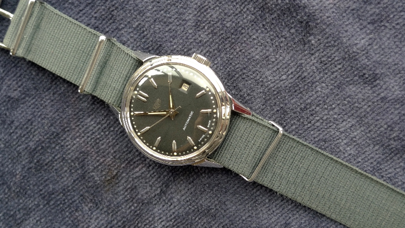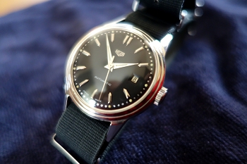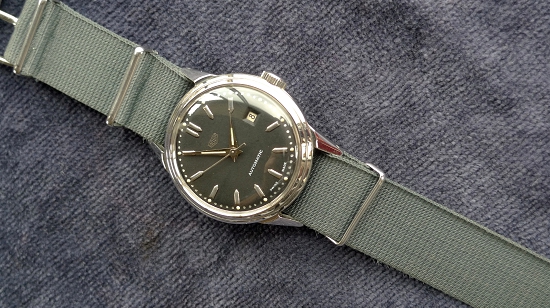 この時代には珍しい自動巻。日付機能も備わっています。