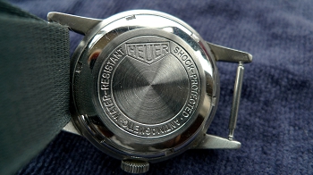 裏蓋にはHEUERの刻印。ベルトはNATO軍G10正規ストラップが着いています。なかなか巡り会うことの出来無い貴重な時計です。