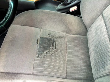 内張・シートの穴や破れ。痛々しい愛車を見るのは嫌ですね。