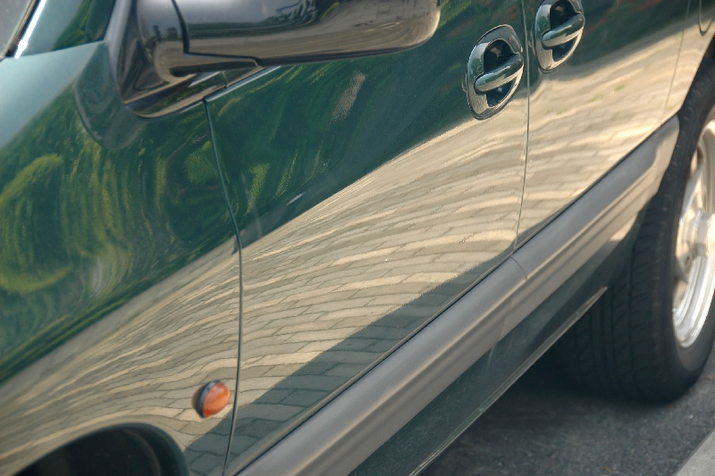 中には光沢測定機器を採用して、『光沢度が○○以下に落ちた場合やり直します』という客観的測定値を基準にしている例も見られますが、これとて心理的マジックの要素が極めて高く、実際には水垢がかなり付いていても、キズが普通に多くても、雨染みがついていても、鉄粉だらけでも、光沢度が○○を以下になることなんてめったにありません。つまりまるで効いていないように見えても、光沢度は○○以上という納得のいかない状態が結構あり得ます。これは機械に問題が有るわけではなく、光沢というものはそういうものであるということです。
