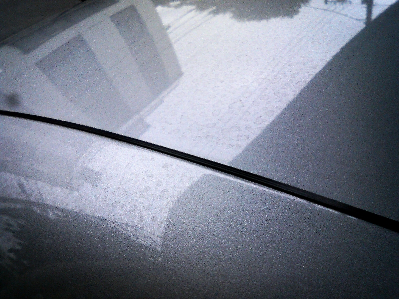 納車後、1年目ですが水玉の状態で焼き付いてしまい普通の磨きでは取れないほどでした。水玉になった方がコーティングが効いているような感じがしますが、必ずしもそれが良いとは言えません。もちろん全ての撥水コーティングが悪い訳ではございませんが…